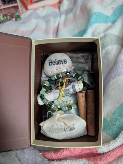 This box includes: Crystals, Money for ritual purposes, cinnamon sticks, cloves, incense, and money riceQuantityComing soonClient Experiences
